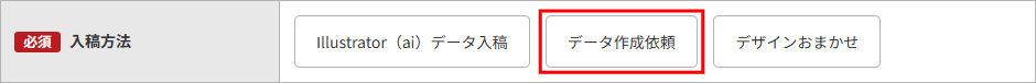 お見積もりフォームの「データ作成依頼」を選択してください。